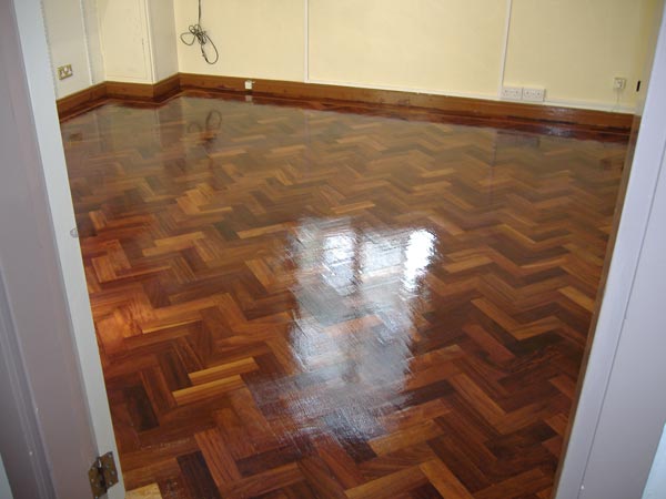 A single coat of wood seal primer was applied to the floor and then a further 2 coats of polyurethane Gloss finish seal was applied to complete the job. As you can see in the pictures the transformation of this floor was astounding.